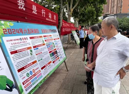6月5日上午,郑州市生态环境局上街分局在亚星盛世广场开展以“全面推进美丽中国建设”为主题的六五环境日宣传活动。在活动现场,工作人员摆放展板、横幅、咨询台,向过往群众发放宣传页、手提袋、抽纸盒、扇子等。重点向群众介绍六五环境日的由来及意义,普及习近平生态文明思想,倡导绿色低碳生活理念,引导广大群众增强节约意识、低碳意识、环保意识,在全社会营造“美丽中国,我是行动者”的良好氛围。