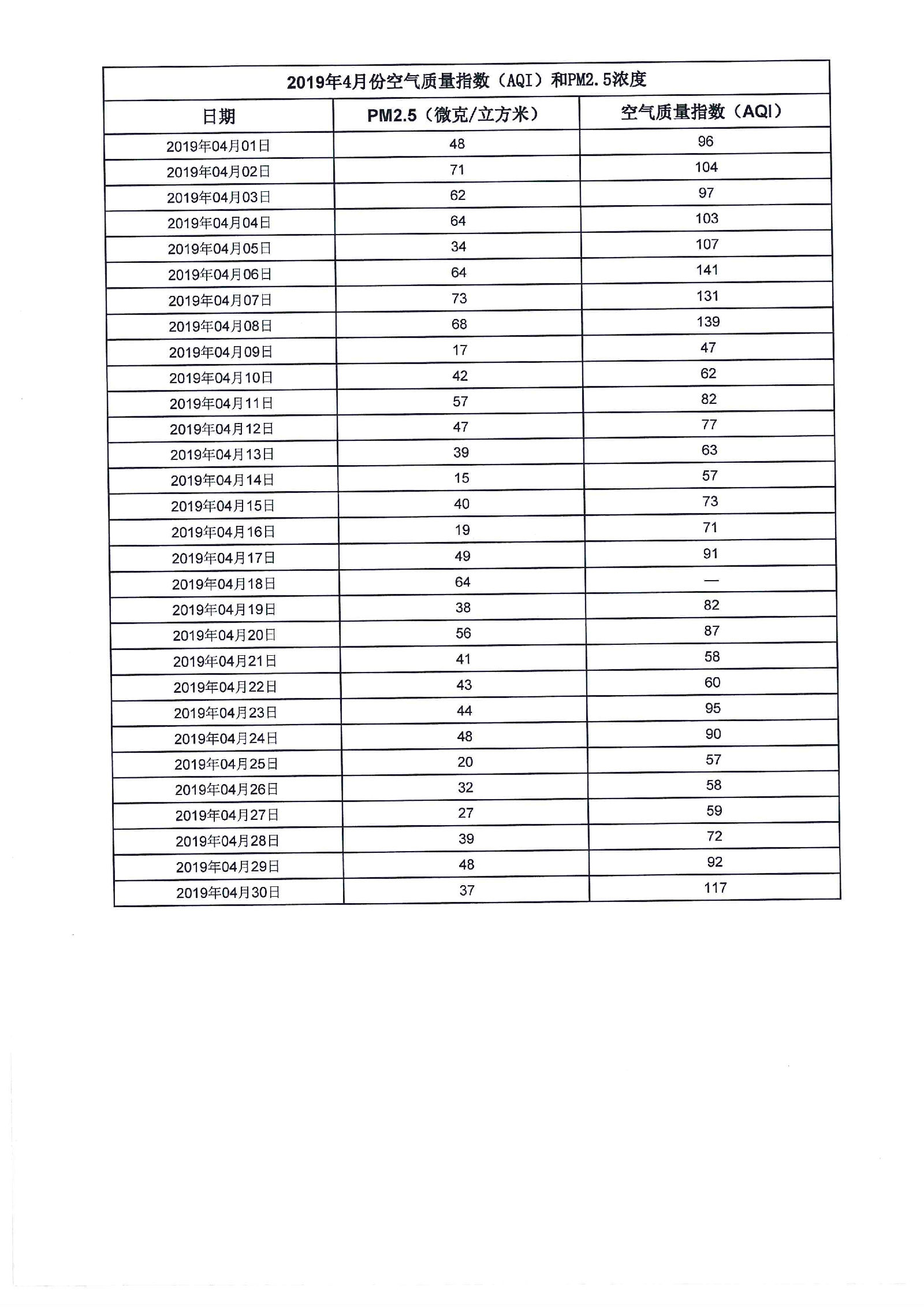 2019年4月份空气质量指数(AQI)和PM2.5浓度