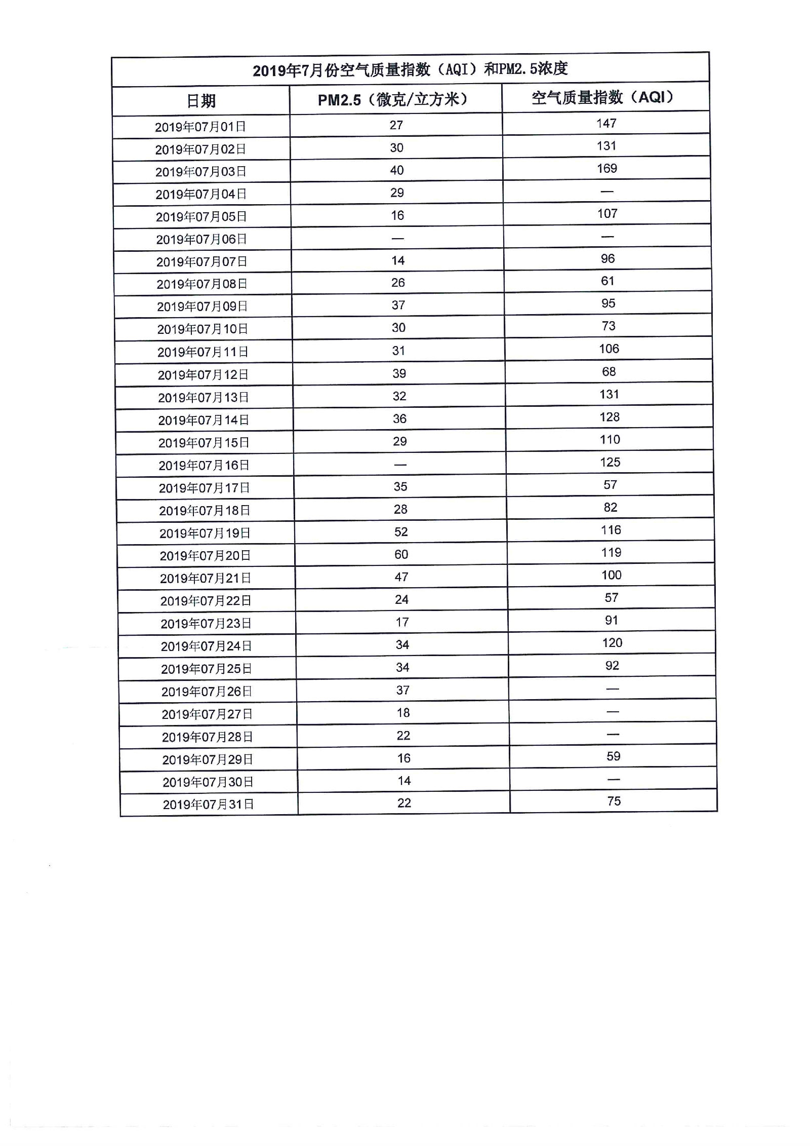 2019年7月份空气质量指数(AQI)和PM2.5浓度
