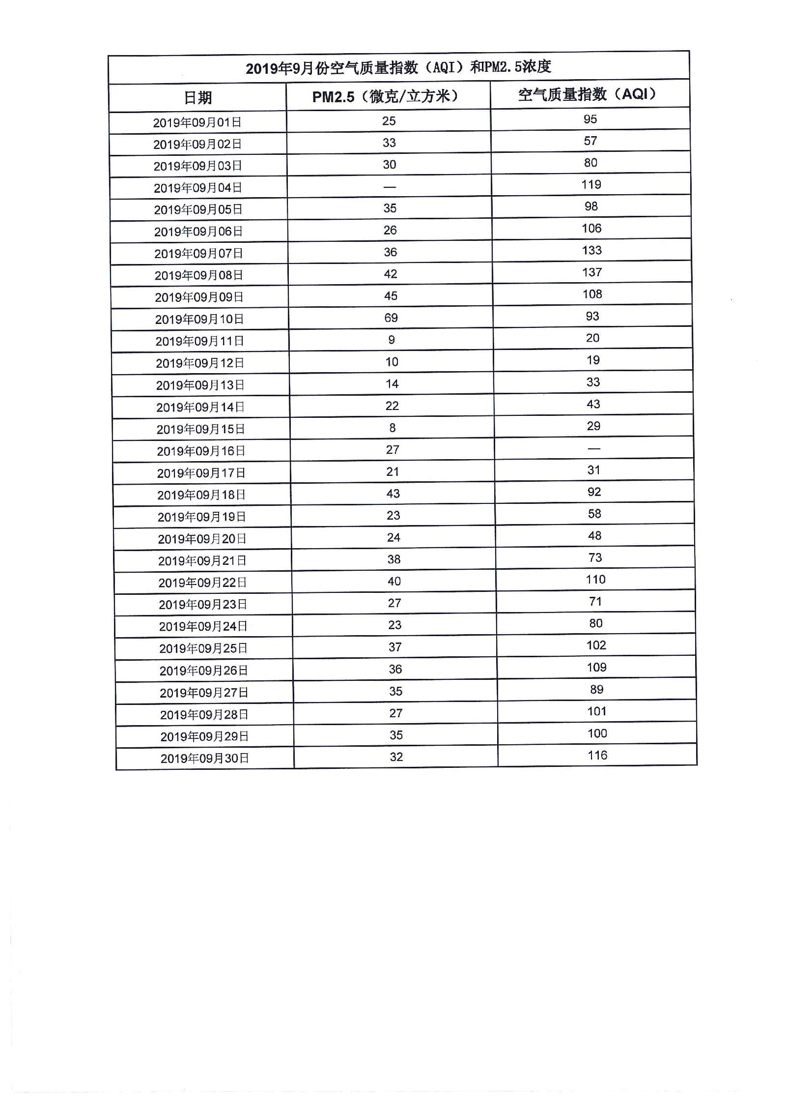 2019年9月份空气质量指数(AQI)和PM2.5浓度