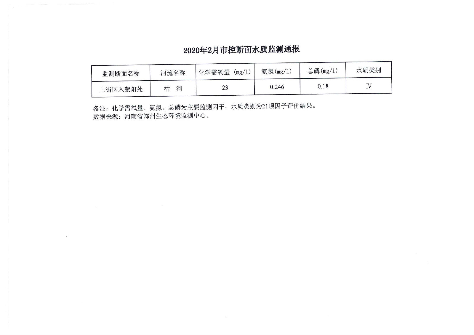 2020年2月市控断面水质监测通报