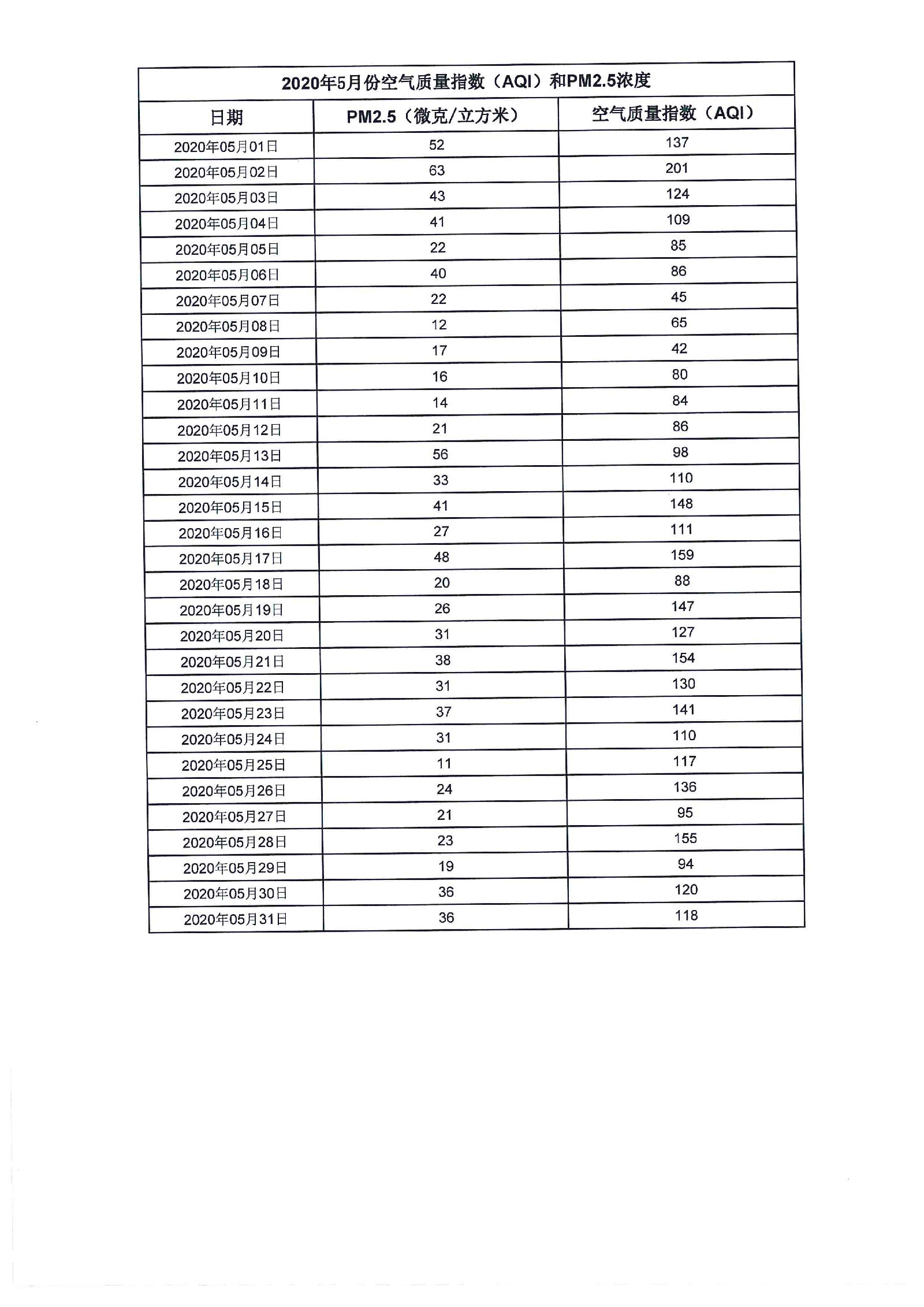 2020年5月空气质量指数(AQI)和PM2.5浓度