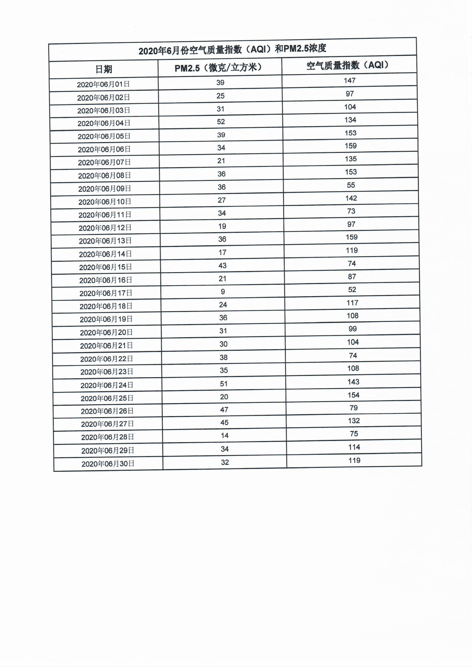 2020年6月份空气质量指数(AQI)和PM2.5浓度