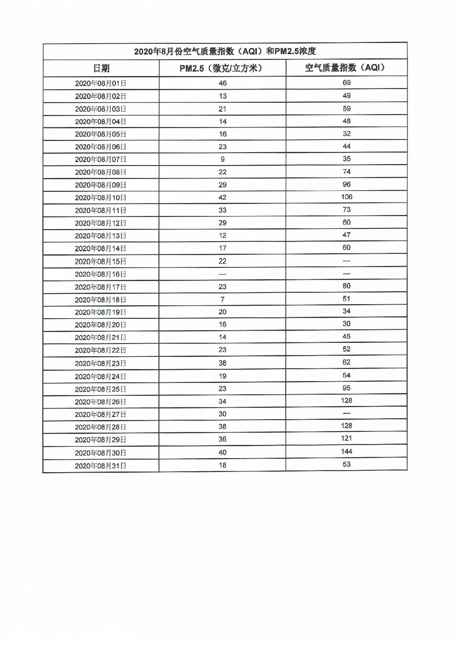 2020年8月份空气质量指数(AQI)和PM2.5浓度