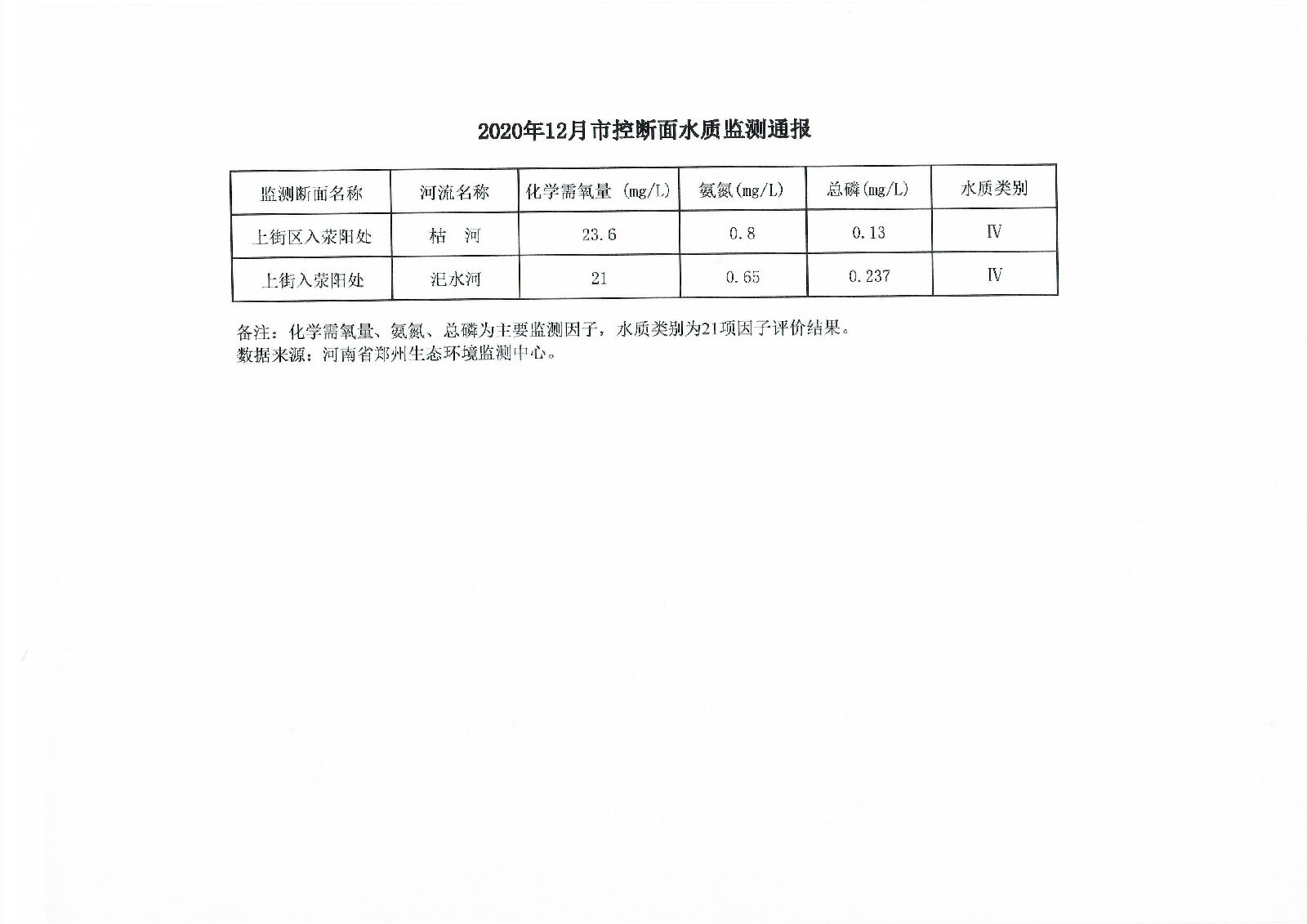 2020年12月市控断面水质监测通报