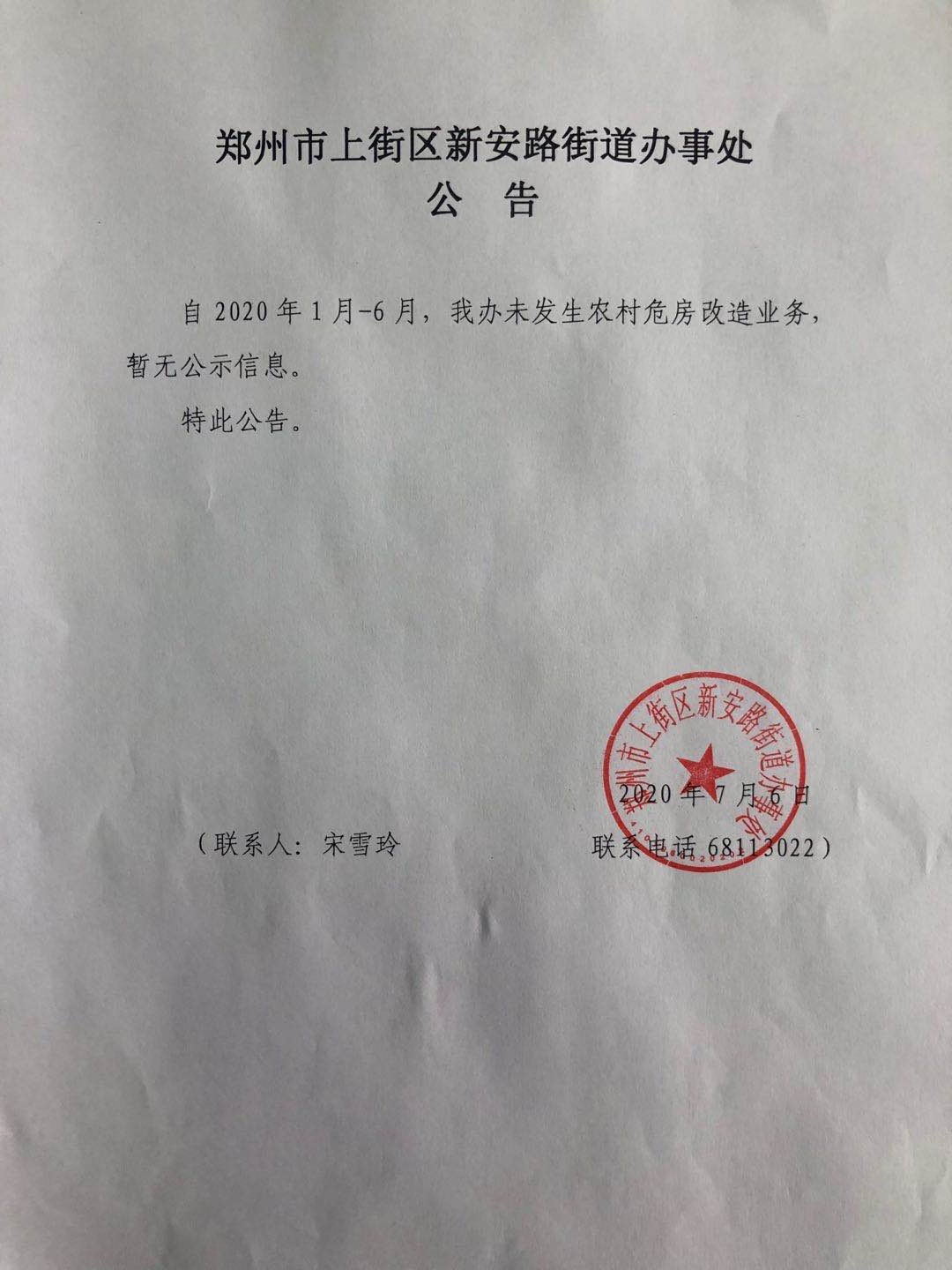 上街区新安路街道办事处关于农村危房改造领域的公告