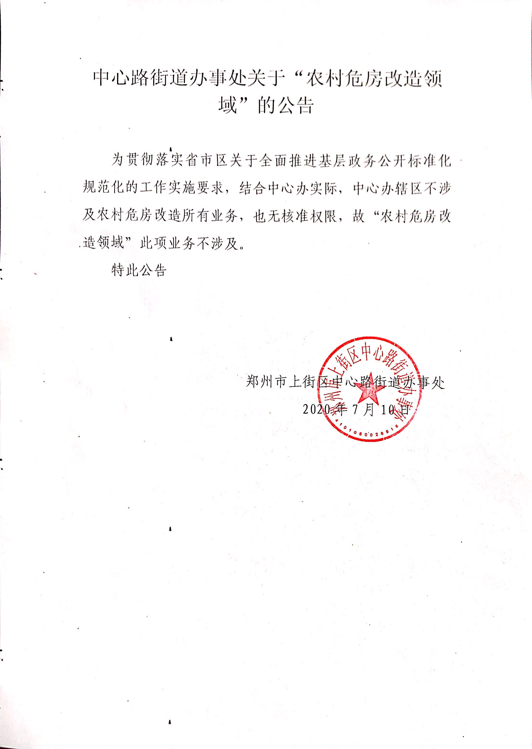 上街区中心路街道办事处关于农村危房改造领域的公告