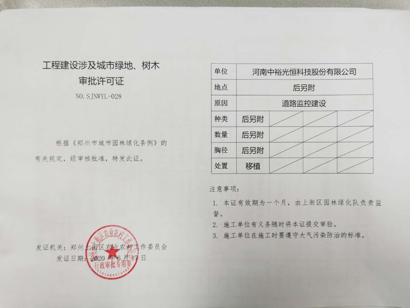 关于工程建设涉及城市绿地、树木审批许可证公示