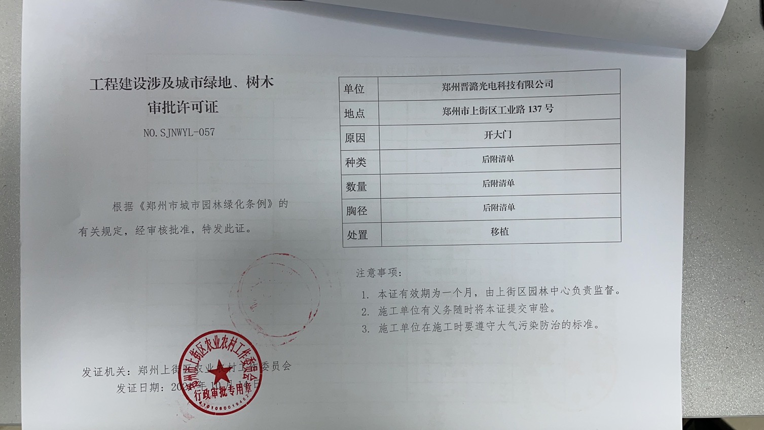 关于《工程建设涉及城市绿地、树木审批许可证》的公示