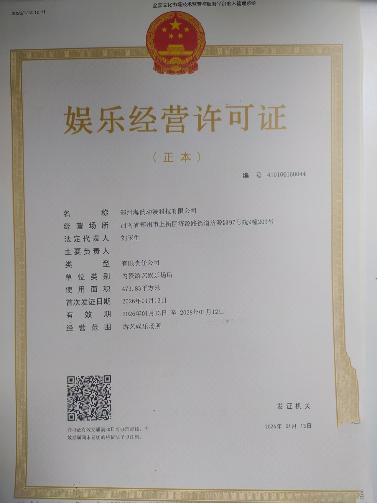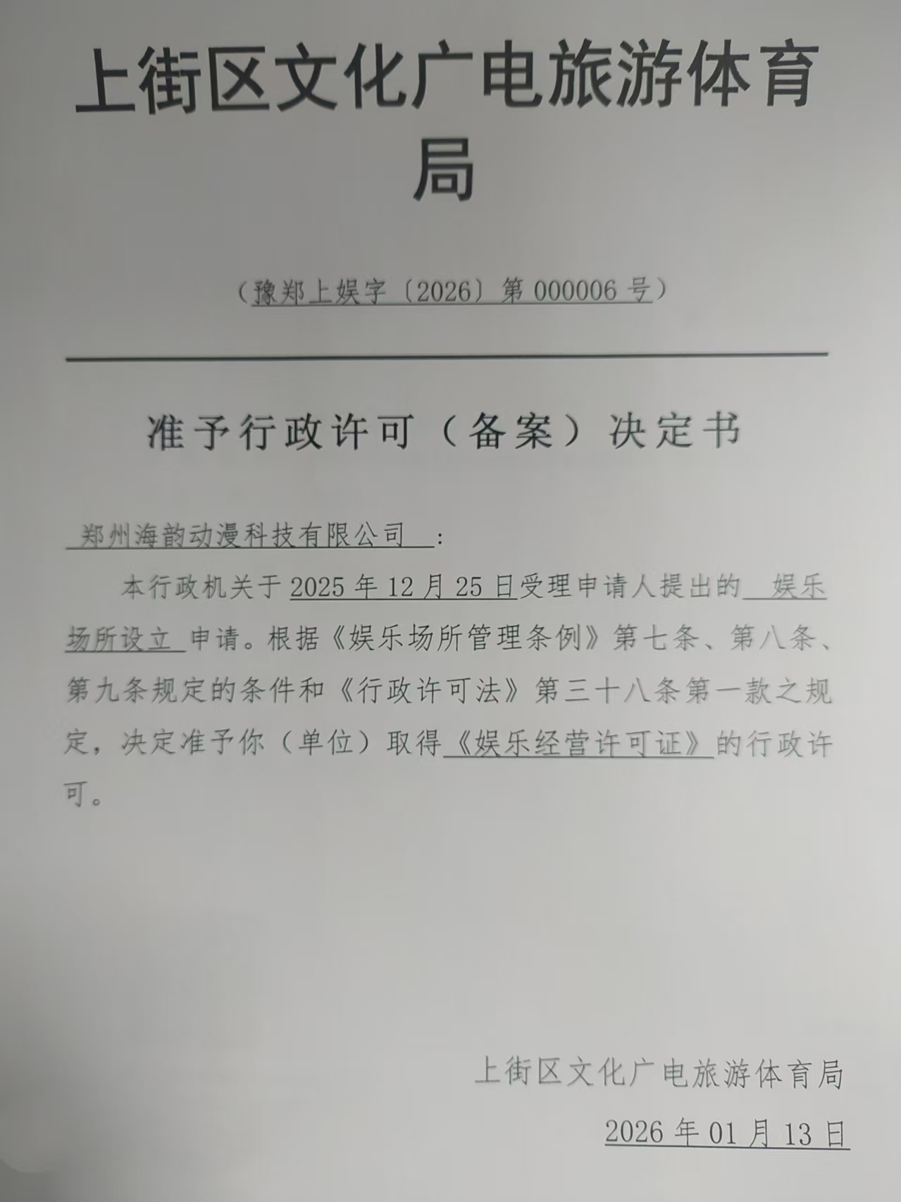 郑州海韵动漫科技有限公司《准予行政许可决定书》
