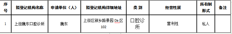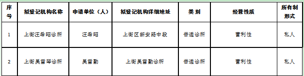 为进一步规范和加强医疗机构审批管理,根据《原卫生部关于医疗机构审批管理的若干规定》(卫医发〔2008〕35号)文件精神,现将申请登记医疗机构信息进行公示,公示日期为2019年10月28日至 2019年11月1日。