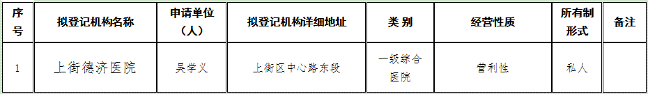 为进一步规范和加强医疗机构审批管理,根据《原卫生部关于医疗机构审批管理的若干规定》(卫医发〔2008〕35号)文件精神,现将申请登记医疗机构信息进行公示,公示日期为2020年12月25日至 2020年12月31日。