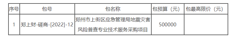 2、项目名称:郑州市上街区应急管理局地震灾害风险普查专业技术服务采购项目