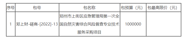 2、项目名称:郑州市上街区应急管理局第一次全国自然灾害综合风险普查专业技术服务采购项目