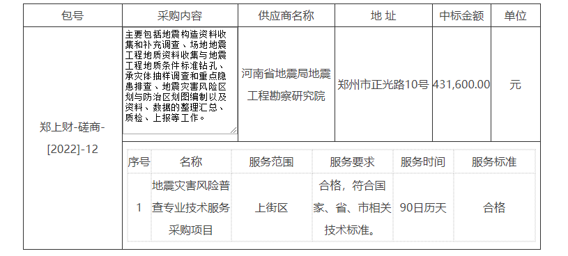 2、采购项目名称:郑州市上街区应急管理局地震灾害风险普查专业技术服务采购项目