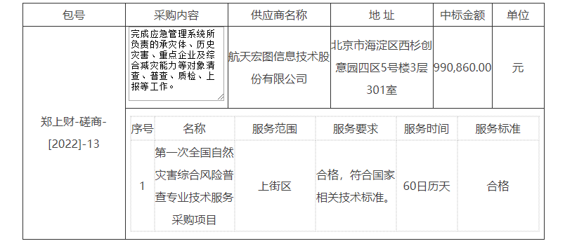 2、采购项目名称:郑州市上街区应急管理局第一次全国自然灾害综合风险普查专业技术服务采购项目